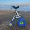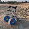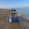 Su estructura de aluminio es tan resistente como ligera, y está fabricada con materiales anticorrosivos que lo hacen ideal para ambientes húmedos o salinos. Sus ruedas todoterreno permiten un desplazamiento suave y estable por superficies difíciles como la arena, el césped o la grava.