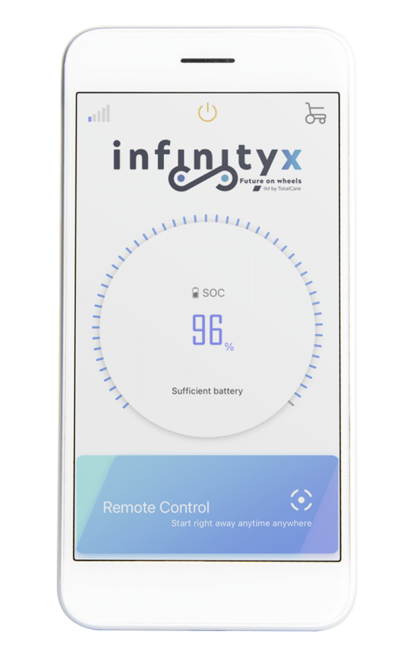 Disponible para iOS y Android. Mediante la APP oficial de InfinityX puede revisar el estado de carga de batería de la silla, conducirla, plegarla y desplegarla a distancia entre otras utilidades.